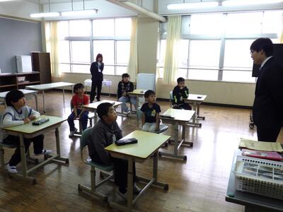 どんな先生かなと、目を輝かせながらそれぞれの先生の話を聞き、その内容に「うんうん。」「おお~。」とよい反応を見せていました。