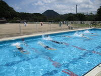 中間休みから着替えをすませて、プールサイドに集合しました。今日は、水慣れを十分にしてから初めの泳力測定を実施しました。ここ数年しっかりと水泳学習に取り組んでいないため、泳げる人もいれば、プールの水に顔をつけるのも久しぶりで苦手としている人もいました。そんな中楽しく活動できるように丁寧に指導を行いました。水泳学習を終えると「もっと泳ぎたかったな~」「また今度入りたい」と次に向けて意欲を持つ様子も見られました。高学年は明日も水泳学習を予定しています。保護者の皆様には洗濯をお世話になります。