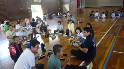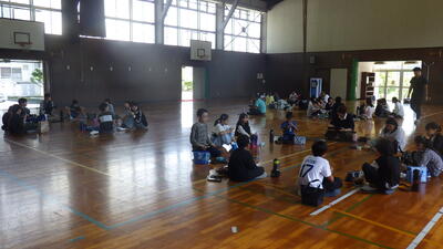 10/6 全校でお弁当タイム 投稿: 学校管理者 (10/06) カテゴリー: 全校 今日は運動会延期の影響で給食がありませんでした。そこで、みんなお弁当を持参して授業に臨みました。昼食時間には、遠足以来となる「全校お弁当タイム」を設け、体育館にてなかよし班ごとに楽しく食事をしました。子どもたちは笑顔いっぱい!友だちとおしゃべりしながら食べるお弁当は、いつも以上に美味しかったようです。ちょっと特別な1日になりました。お弁当の準備ありがとうございました。 -