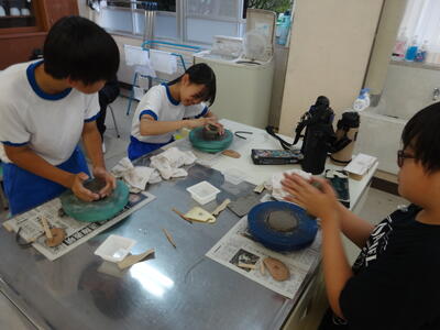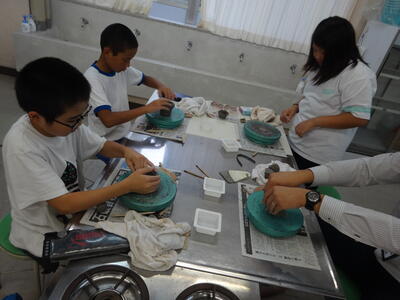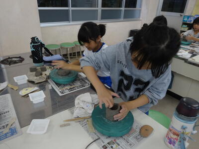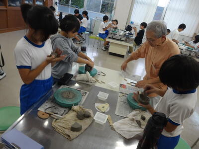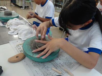 10/14 陶芸教室5、6年生 投稿: 学校管理者 (17:51) カテゴリー: 高学年 舞鶴市陶芸館より講師の先生をお招きし、5、6年児童を対象にした陶芸教室を開催しました。 粘土の感触に驚きながらも、子どもたちは思い思いの形を作り始めました。最初はうまくいかず、形が崩れてしまったり、ひびが入ってしまったりと、失敗もたくさんありました。しかし、講師の先生の優しいアドバイスと励ましの言葉に背中を押され、何度も挑戦する姿が見られました。 -