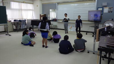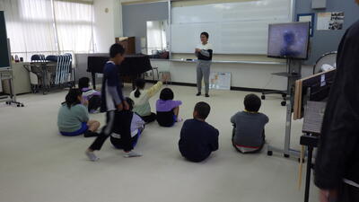 中間休みの時間を使って、異年齢の児童が集まる「なかよし班遊び」が行われました。高学年の児童が中心となって企画・運営した今回の活動では、体育館・音楽室・学習室の3か所で、それぞれ楽しい遊びをしました。