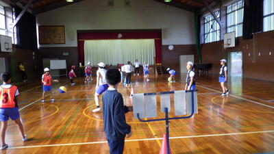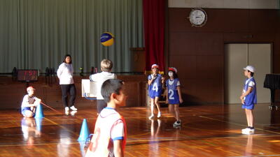 スポーツクラブでは、今体育の授業でも取り組んでいる「プレルボール」に挑戦しました。プレルボールは、バレーボールに似たルールで、ボールをワンバウンドさせてから打ち返す楽しいスポーツです。作戦を立てたり、仲間と声をかけ合ったりすることで、チームワークの大切さを学ぶことができます。