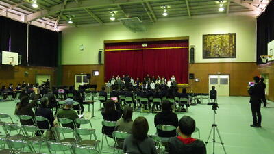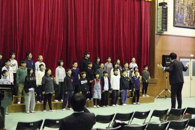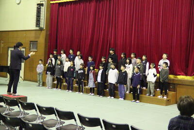 また、加佐中学校の生徒による合唱も披露され、力強く、心のこもった歌声が会場に響きました。中学生らしい表現力と迫力ある歌声に、小学生たちも大きな刺激を受けていました。