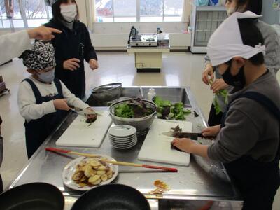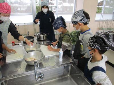 1・2年生が生活科で育ててきた“かぶ”を使って、調理実習を行いました。技労員さんにも手伝ってもらいながら、お世話をしてきたかぶは、どれも立派に育ち、子どもたちは収穫のときからワクワクが止まりませんでした。調理では、包丁の使い方や焼き方をみんなで協力しながら丁寧に進めました。かぶがじゅわっと焼ける音や香ばしいにおいに、子どもたちは思わず笑顔に。できあがった「かぶステーキ」は、とてもおいしく、子どもたちからは「自分で育てたかぶは特別おいしい!」という声がたくさん聞こえてきました。