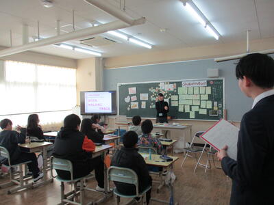 市の生活環境課の方を招いて、6年生を対象に「ごみをへらすために」をテーマとした出前講座を行いました。講座では、はじめにごみを処理するためにどれくらいのお金がかかっているのかを分かりやすく教えてもらいました。子どもたちは、日々何気なく出しているごみが、市全体では大きな費用につながっていることに驚いた様子でした。その後、ごみをへらすために自分たちができることについて意見を出し合い、活発な話し合いが行われました。「使い捨てを減らす」「エコバッグを使う」「リサイクルにしっかり取り組む」など、たくさんのアイデアが出されました。