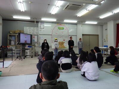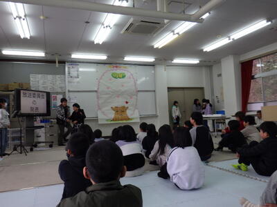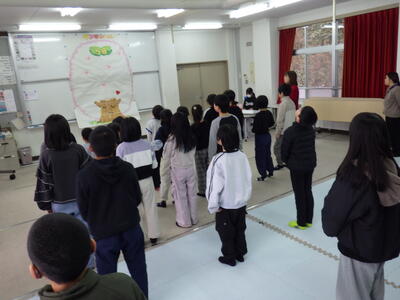 2月の児童集会を行いました。初めに6年生を送る会で披露する全校合唱を全員で歌いました。次に、児童会本部役員からは、2月の取組として「ありがとうの取組サンキューちゃん58」の紹介がありました。この取組は、ありがとうを伝える取組で児童37人と先生たちを合わせた58人によって、校内に「ありがとう」がさらに広がっていくことをめざすものです。みんなの温かい気持ちが集まって、ありがとうの木がこれからますますすてきな木になることを期待しています。