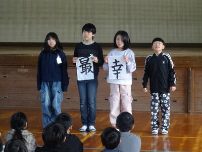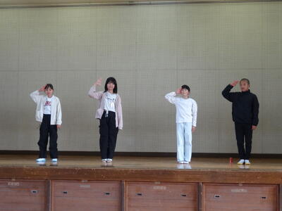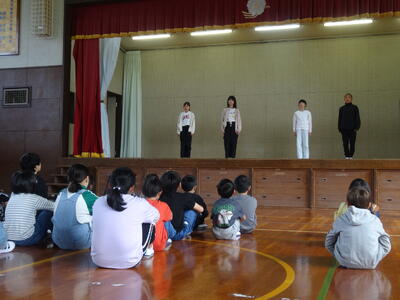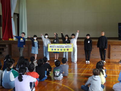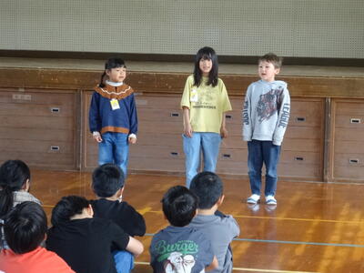 「やる気、仲良し、優しさ、元気」を大切にしたいという前期児童会本部役員の思いがたっぷり詰まった素晴らしい発表でした。